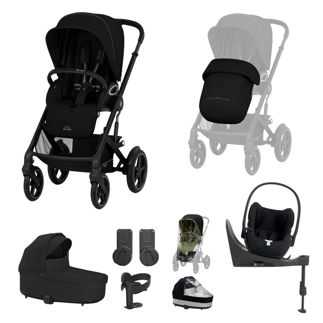 Cybex Talos S Lux Carrycot Travel System with Cloud T Car Seat & ISOFIX Base - Moon Black