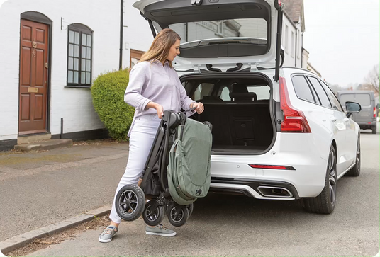 Packing up is easy with a quick and simple fold that tucks the Versatrax into a compact package. Go from strolling to storage in a flash, and secure the lock so the pram stays freestanding – perfect for small spaces.