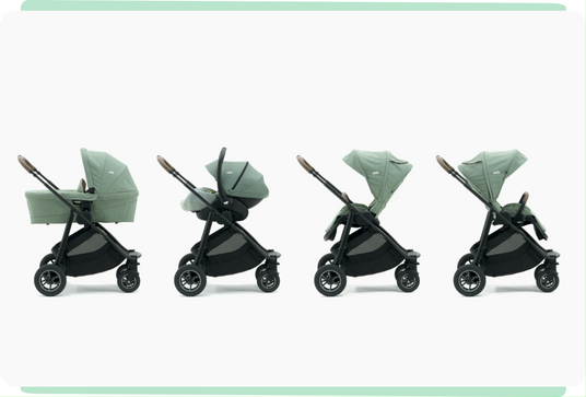 - Four modes in one pram when combined with an infant carrier or carrycot, allowing you to switch from car to pram without waking your baby.