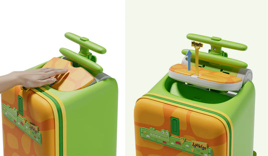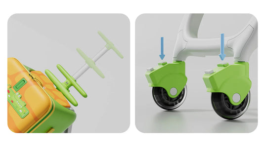 This innovative 3-in-1 design integrates luggage, a stroller, and a ride-on all in one. With a one-click folding system, the 3 in 1 Suitcase easily converts into a stroller, giving parents a versatile solution for both short and long trips. The comfortable PU cushion and adjustable armrest ensure that children are safe and secure while enjoying a smooth ride, whether they’re sitting or riding on top of the luggage.