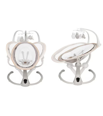 The Cassia swing is ideal for newborns up to 6 months (9 kg), supporting your baby's development and comfort through every stage. The recline positions help transition from a lying to a seated position as your baby grows, while the 360° rotation keeps parents and babies connected. Babies will enjoy the calming sounds and eye-catching movement of the overhead toys as they develop new skills.
