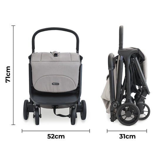 The My Babiie MBX7 doesn't sacrifice practicality despite its compact size. It comes with a spacious storage basket, perfect for carrying essentials while you’re out and about. Whether it’s nappies, toys, or shopping, there’s plenty of room for your belongings. The stroller also includes a cup holder and a rain cover, making it functional in various weather conditions and providing added convenience for parents.