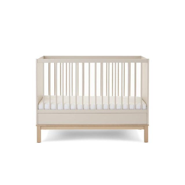 The Astrid Mini Cot Bed requires an Obaby 120 x 60 cm mattress (sold separately), offering a perfect fit for safe and restful sleep.