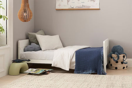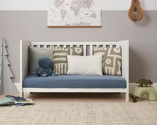 Beyond its use as a cot and toddler bed, this versatile piece also converts into a stylish sofa, extending its lifespan well beyond the toddler years. With the addition of cushions and blankets, it transforms into a cosy play area or a comfortable spot for relaxation, making it a valuable addition to the nursery for years to come. Thoughtfully designed and built for longevity, the Alba Cot Bed ensures that a child has a safe, stylish, and comfortable place to sleep and play throughout their early years.