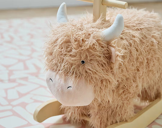 Inspired by the majestic cattle of the Scottish Highlands, Douglas is designed to bring warmth, comfort, and hours of fun to little ones. His luxuriously soft, thick fur makes him perfect for snuggles, while his gentle rocking motion provides a soothing and enjoyable experience for children.