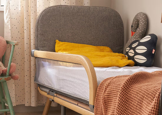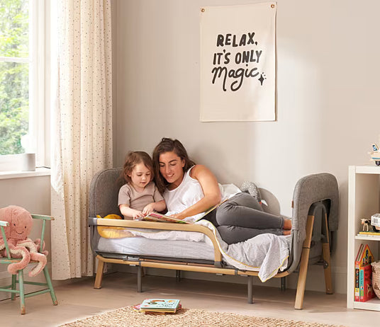 The CoZee XL Junior Bed & Sofa Expansion Pack in Oak & Charcoal seamlessly transforms your CoZee XL cot into a toddler bed (suitable up to four years old) and eventually into a stylish sofa—a perfect, long-lasting addition to your child’s bedroom.