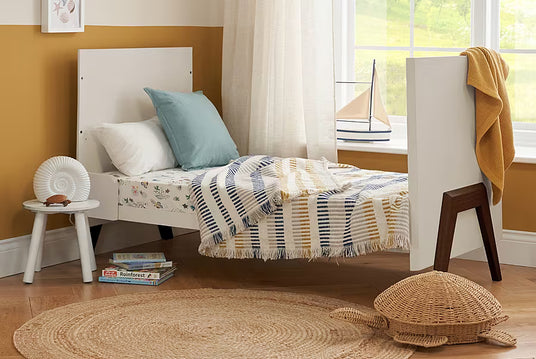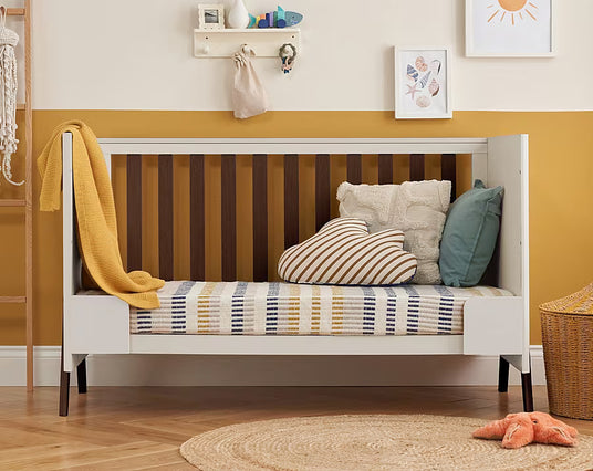 Part of the Fuori furniture collection, this cot bed embodies a tranquil colour palette and modern sophistication, making it an ideal choice for contemporary nurseries. Backed by the Tutti Bambini 3-Year Guarantee, it is a long-lasting investment in both style and functionality.