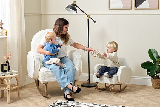 For parents looking to create a coordinated and stylish family space, the Micah Mini Me Rocking Chair pairs beautifully with the adult-sized Jonah Luxe Rocking Chair, creating a unified and visually pleasing look. This matching set enhances any room, making it easy for parents and children to share moments together in a harmonious setting that celebrates their bond.