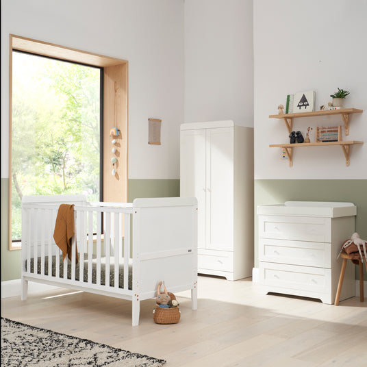Tutti Bambini Rio 3 Piece Nursery Furniture Set with Cot Bed, Cot Top Changer, Dresser and Wardrobe - White