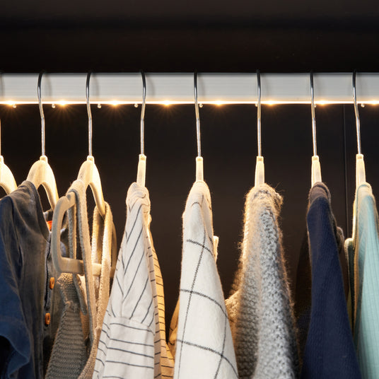 - Motion Sensor Lighting – The hanging rail is equipped with battery-operated motion sensor lights, providing convenient illumination for night-time changes.