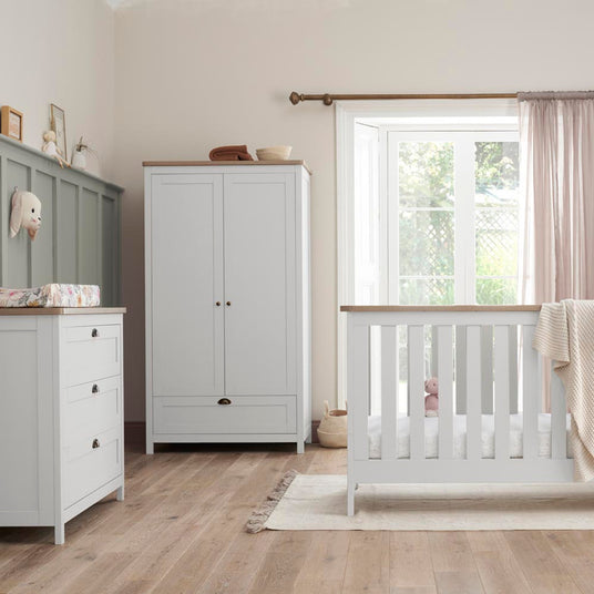 Tutti Bambini Verona 3 Piece Nursery Furniture Set with Cot Bed, Dresser and Wardrobe - White / Oak