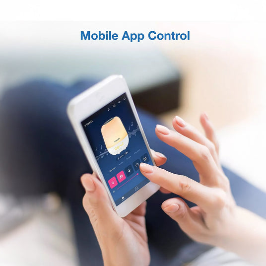 Control all of the V-Hush Lite’s features with ease through the subscription-free app. Adjust sounds, change the night light colour, manage personal recordings, control the projection, and set nap or alarm timers, all from your smartphone—without disrupting your child’s sleep. -